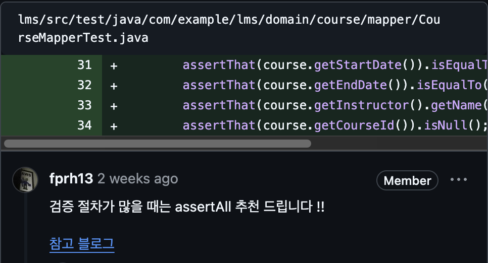 - 테스트 코드에 대해서 더 탐구해서 더 작은 단위, 그리고 효율적인 테스트 코드를 작성할 수 있도록 할 것이다. 이를 통해, 격리된 환경에서 문제를 잘 해결할 수 있는 능력을 키우고 싶다.