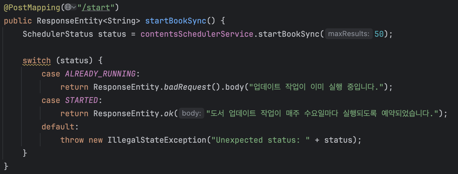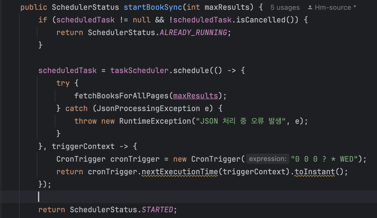 - 외주 개발을 완성하였다.(도서 API 호출 스케쥴러 개발)