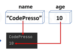변수는 이름이 존재하고 예를 들어 name, age, title, content 등 사용자가 정할 수 있습니다.