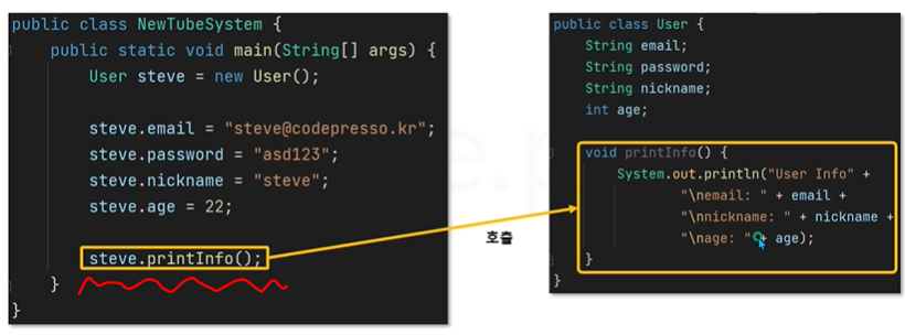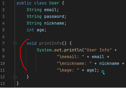 이렇게 printInfo()라는 메소드를 만들었습니다.