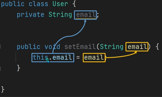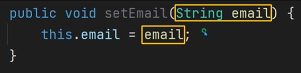 - 보통 1개의 멤버 변수의 값을 세팅하는 메소드는 set이라는 동사로 사용합니다.