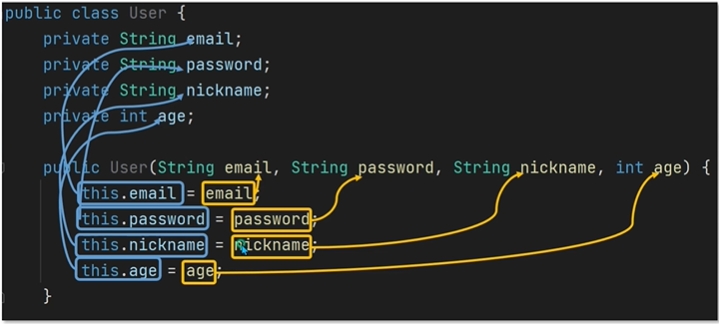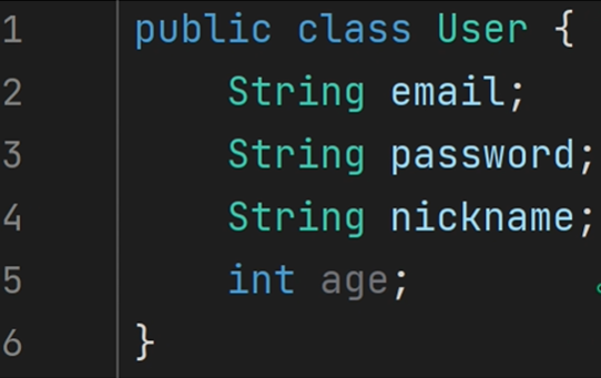 이전에는 User 클래스에서 멤버 변수 4개만 존재했습니다.