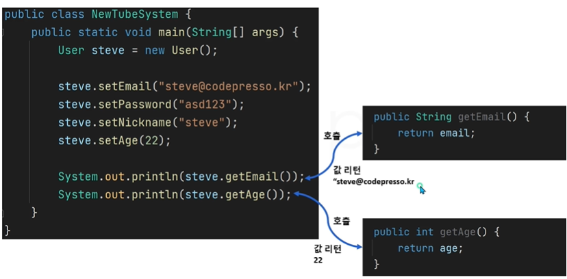 - getter 메소드로 객체 멤버 변수의 값을 사용할 수 있습니다.