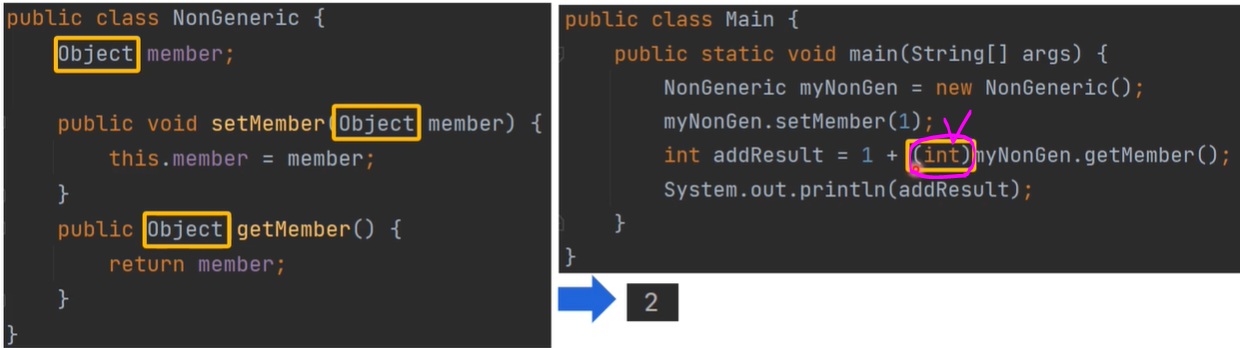 하지만 제네릭을 이용해 범용성을 확보하면 명시적 형 변환이 필요 없습니다.
