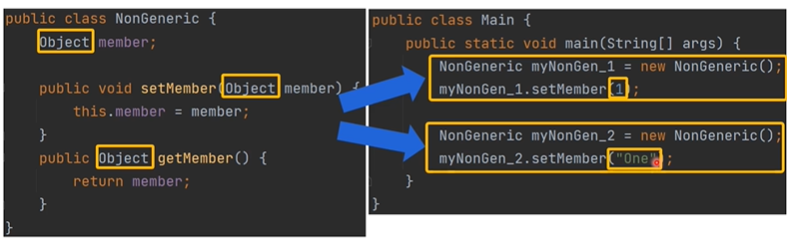 - 클래스 내 임의의 변수를 매번 다른 데이터 타입으로 지정하여 객체 생성이 가능합니다.