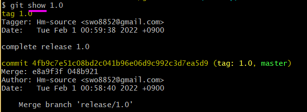 tag는 git show 1.0을 통해 정보를 볼 수 있습니다.
