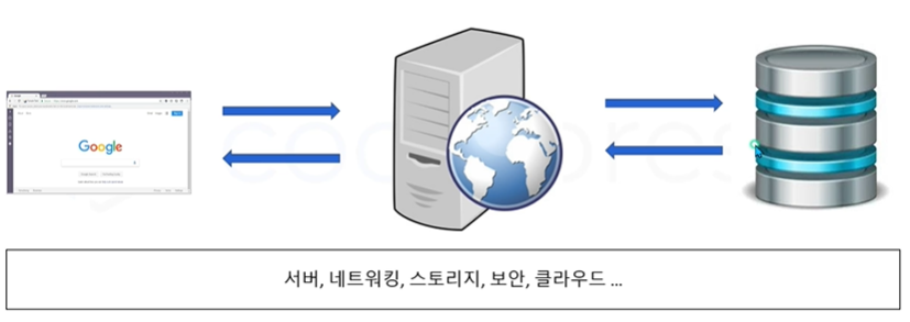 그리고 이러한 웹서비스를 지탱하는 infrastructure 들이 있는데 서버, 네트워킹, 스토리지, 보안, 클라우드 등의 기술이 있습니다.