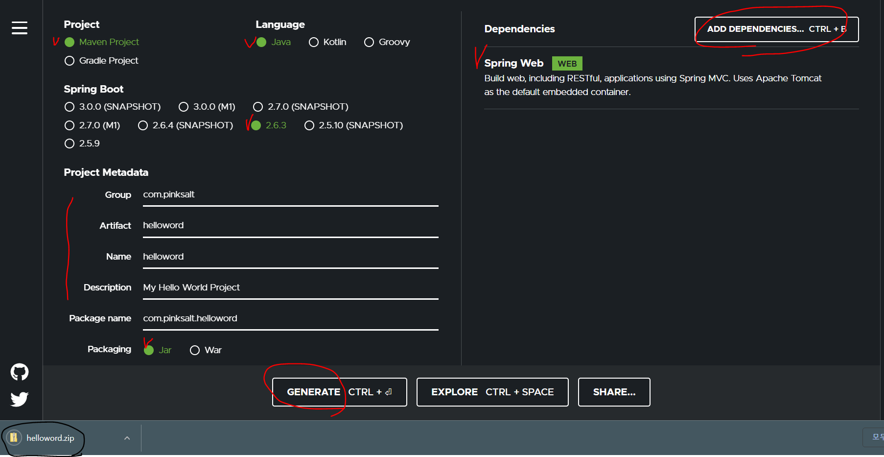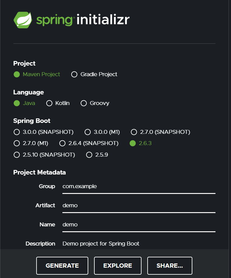 - Spring Boot 프로젝트를 쉽게 구성할 수 있게 지원하는 사이트입니다.