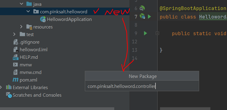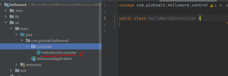 그리고 만든 controller 패키지 밑에 class를 생성합니다.