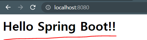 크롬을 통해서 Hello Spring Boot!!를 확인할 수 있습니다.