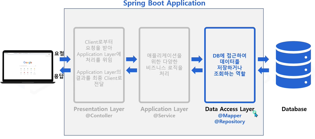 Database에 접근하여 데이터 저장, 조회 등을 수행하는 역할 입니다.