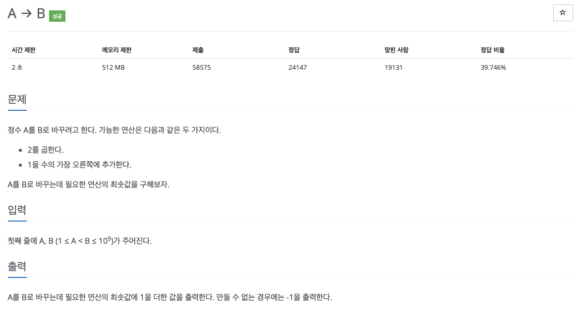 백준 16953 A -> B
