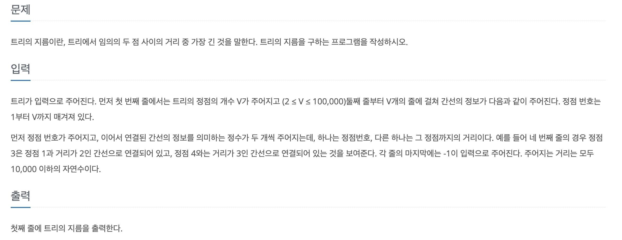 - A에서 B가 가장 먼 노드라면 A와 B의 거리는 해당 범위의 지름이 된다.